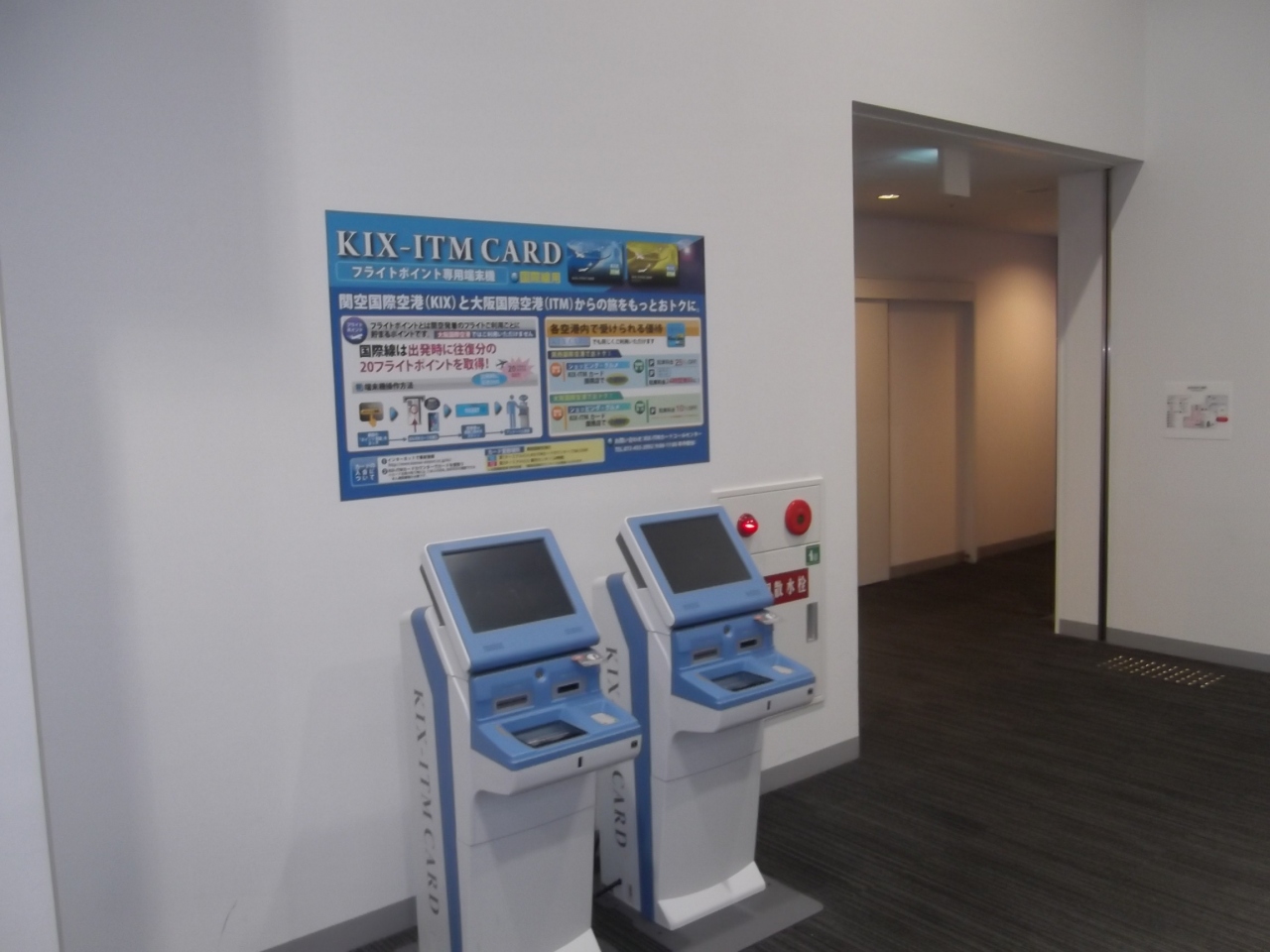 KIXカードでポイントが貯まります。関西国際空港から飛行機を利用する時、フライトポイントが貯まります。フライトポイントは、国際線は出国エリアに設置された「フライトポイント専用端末機」でポイントを貯めることが出来ます。第1ターミナルにもありますが、第2ターミナルでも出国審査を抜けた右側のトイレに行く手前にあります。