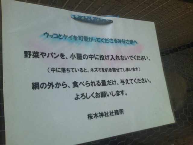 本郷地区にひっそりと佇む小さな神社でしたが、ここで驚かされたのは、境内に飼育されていた烏骨鶏です。どういう経緯で飼育されているのか、解説がないのでよく解りませんでしたが、餌をやる時の注意事項などが記されていて、へぇ~、エサやり禁止ではないんだ、とちょっと驚かされました。