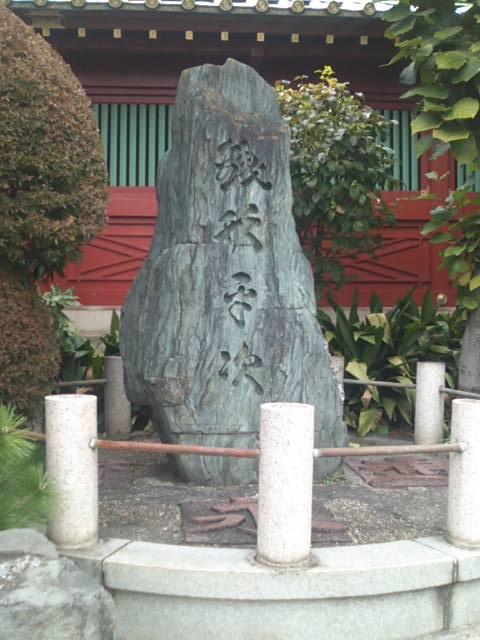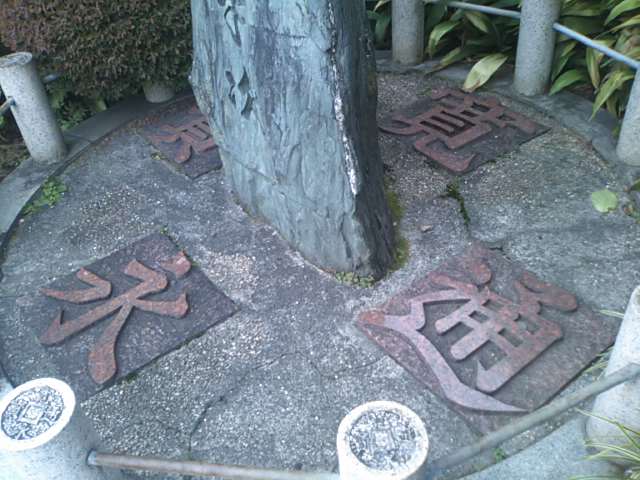 こちらの碑は、神田明神の境内の一角にありますが、表参道を経由して山門から本殿に至る際には、少し裏手にありますので、見逃されないようにご注意下さい。碑の基部には寛永通宝がデザインされていて、なかなかユニークな風情の碑となっていました。