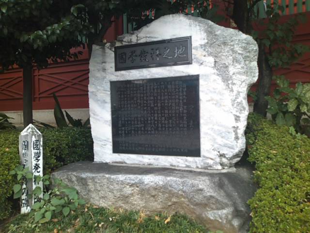 こちらの碑は、神田明神の境内にあり、すぐ隣には銭形平次の碑が建っていますが、本殿側から見ると銭形平次の碑よりも更に遠い側に建っているため、観光客の動向を見ていると銭形平次の碑だけを見て満足して引き返す、という方が多く感じられて、この碑が少し可哀想に感じられました。歴史的な意義はとても高い国学発祥地ですので、是非銭形平次のみならず、こちらの碑にも注目してあげて下さい。