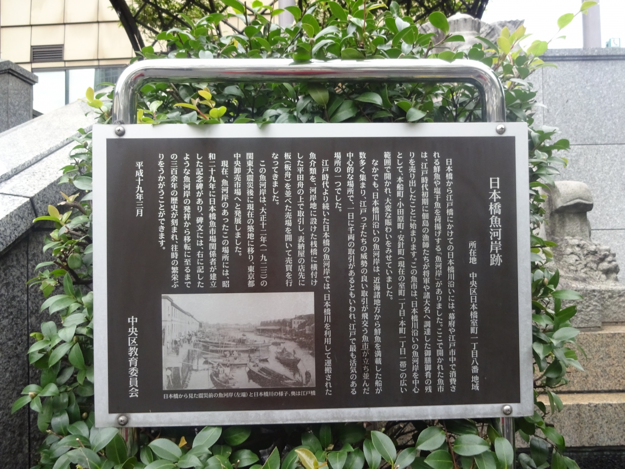関東大震災まで、ここが魚河岸として栄えていたことや由来などがの説明板にかかれている。