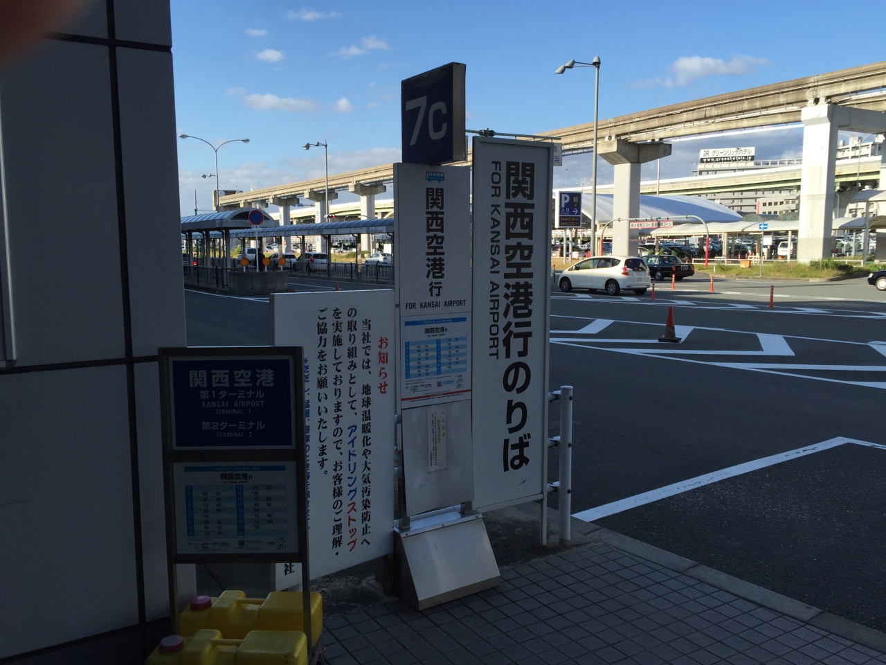 バスの乗り場は、空港からモノレールに進む連絡橋が有るのですが、その下です。