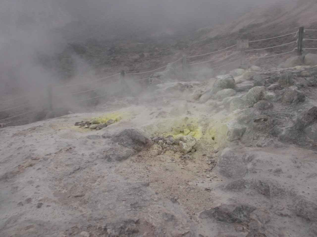 駐車場から歩いて数分で硫黄が香る場所に着きます。