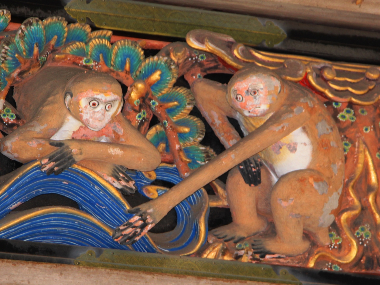 日光東照宮で有名な、三猿(見ざる・言わざる・聞かざる)は、実は、8枚の彫刻から作られた物語の一葉に過ぎない。