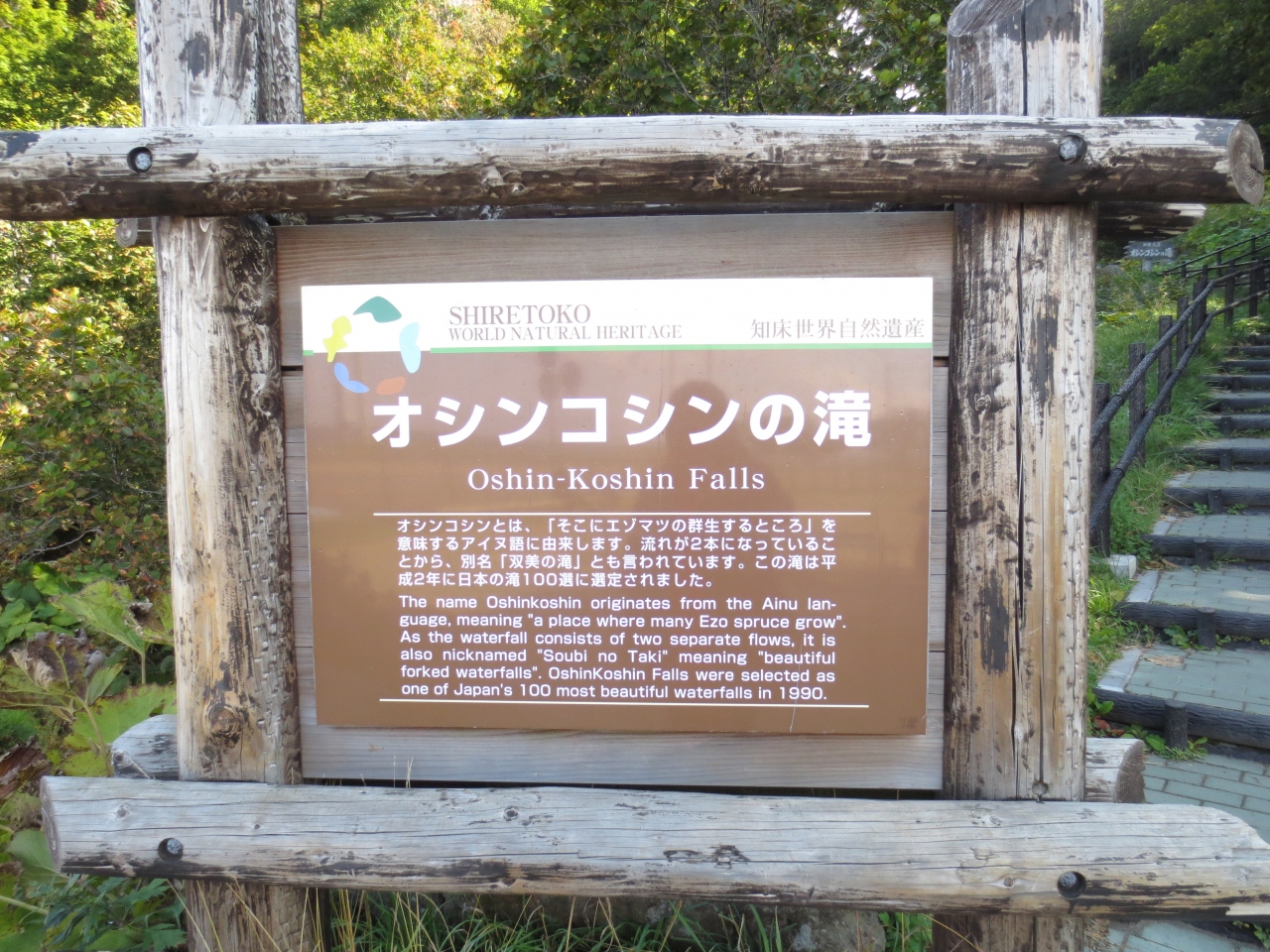 オシンコシンの滝は単独の観光スポットになっており、国道沿いにふつうに駐車場があるくらい人気のようです。日本の滝100選にも選ばれており、存在感のある滝で、迫力は満点でした。階段を登って観察することができました。
