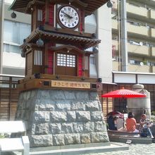道後温泉駅の近くにあります。足湯やカラクリ時計があり、ゆったりと過ごすことができます。近くには、ガス灯もあり、夜にはレトロな雰囲気を楽しむことができます。阿曽¥市湯は、温度が少し高めであり、体がポカポカします。