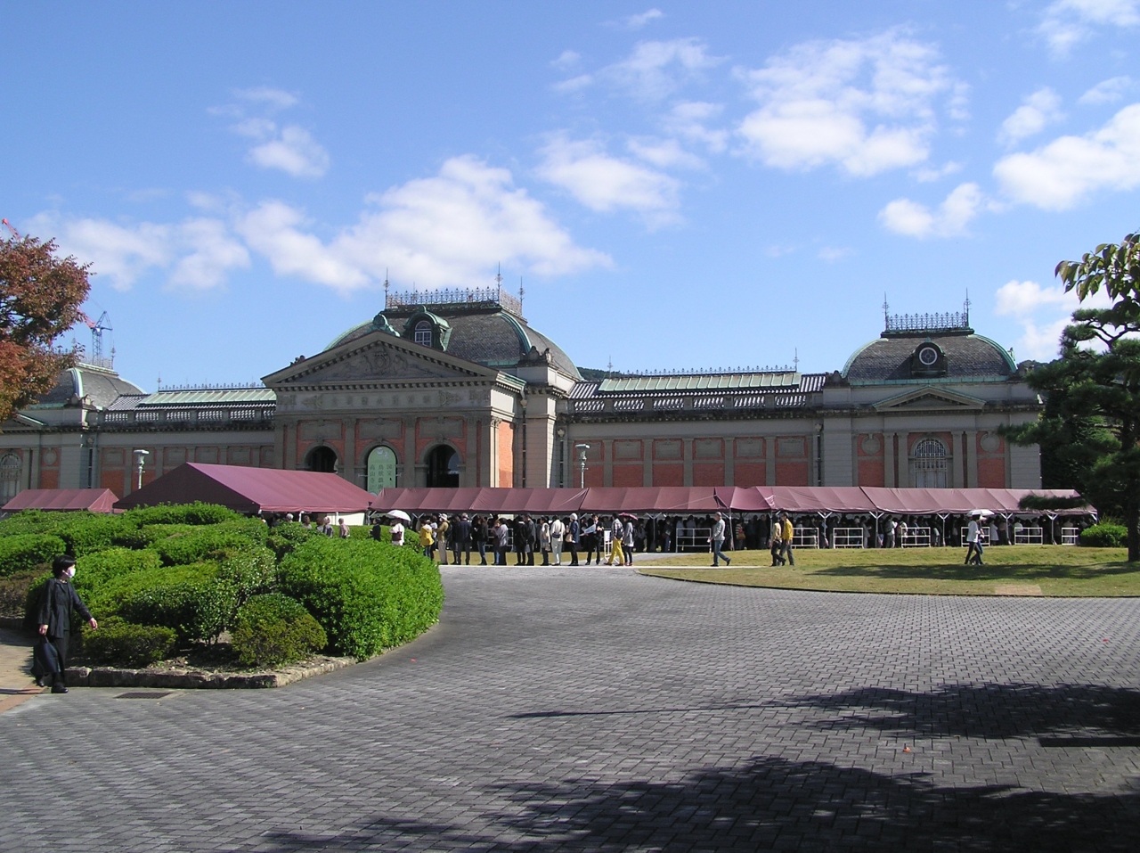 特別展は本館の明治古都館で開催されていますが(11月24日迄)、西洋風のレンガ造りの重厚な建物で、国の重要文化財に指定されています。又、この秋の京都非公開文化財特別公開でレンガ造りの表門(重文)が初公開され、そこから眺める庭園と噴水、本館の眺めは充分な見映えでした(ロダンの考える人の彫刻もあります)。