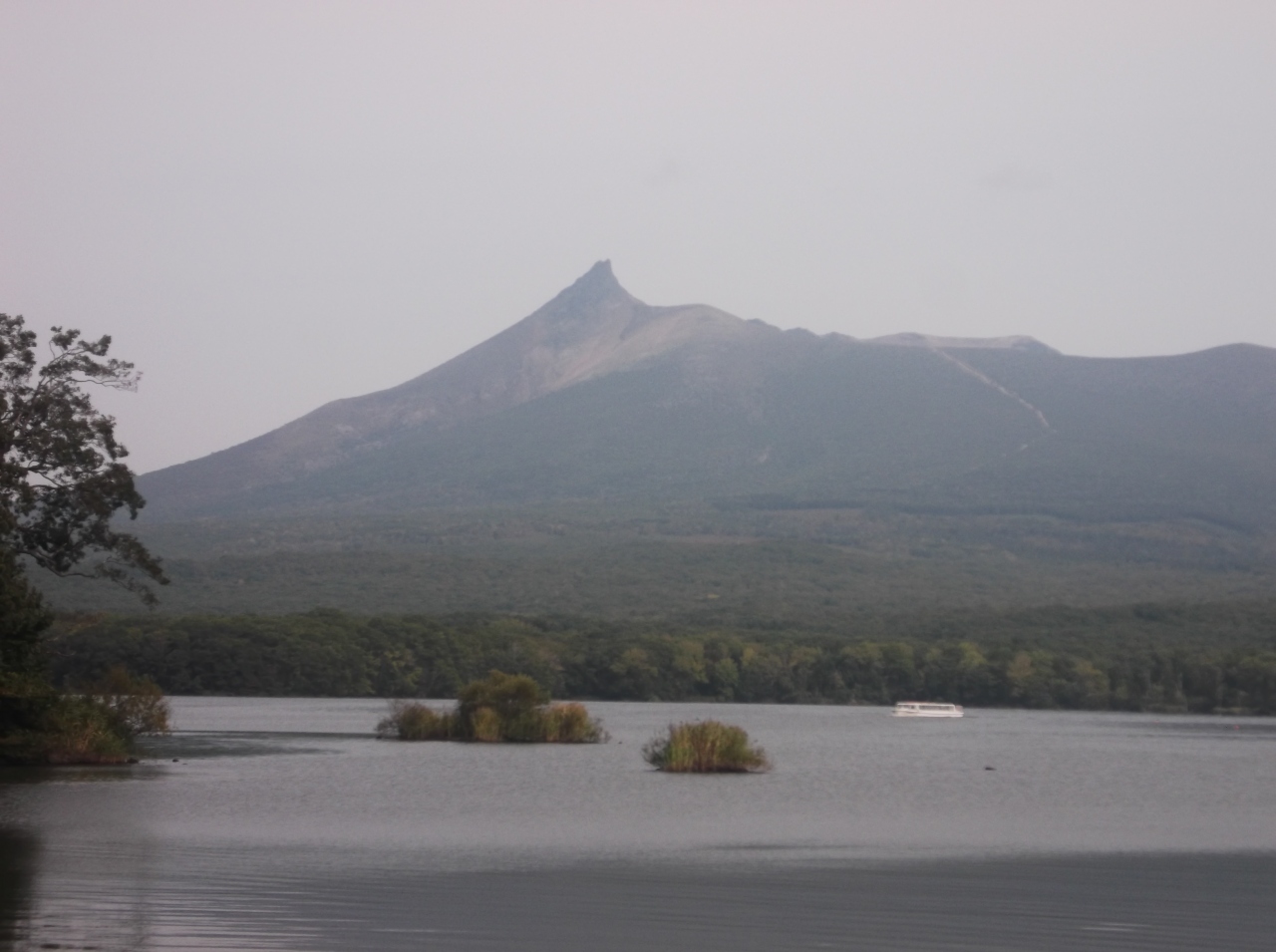 大沼公園駅前の国際交流プラザから道道を500メートル走り右折してターブル・デュ・リバージュの駐車場に停めて駒ヶ岳の良く見えるポイントを探しました。