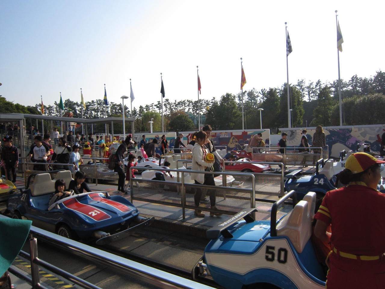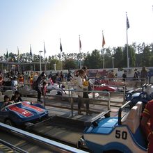 私には小さな子供がいるのですが、他の遊園地では車のアトラクションを小さな子供一人で運転は出来ませんが、このアトラクションではレールの上に車が乗っているので小さな子供に運転させてもとても安心で子供も超ご機嫌になり家族にはとてもお勧めです。
