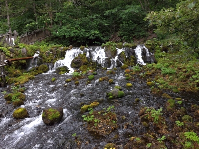 突然川が始まったような水流のすぐ下に水汲み場がたくさんあり、飲み放題汲み放題です。