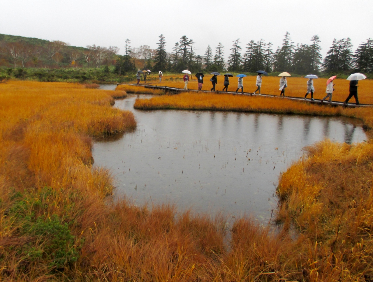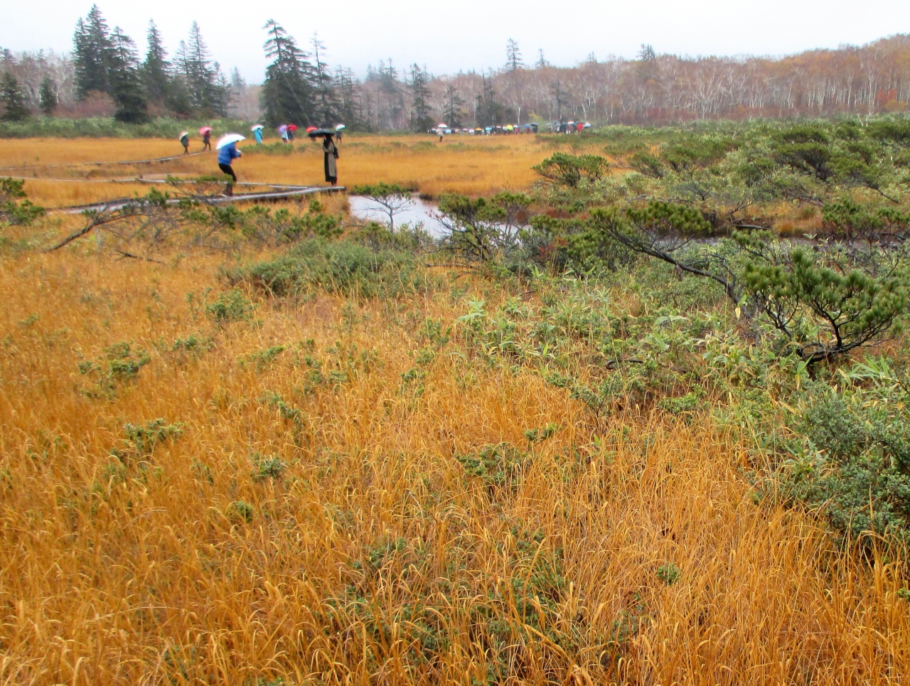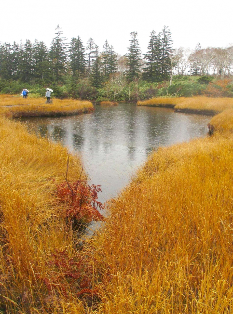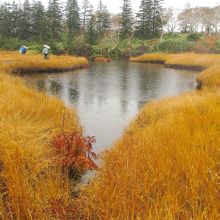 しっとりした湿原の草紅葉は、沼をいっそう神秘的な雰囲気にしていました。