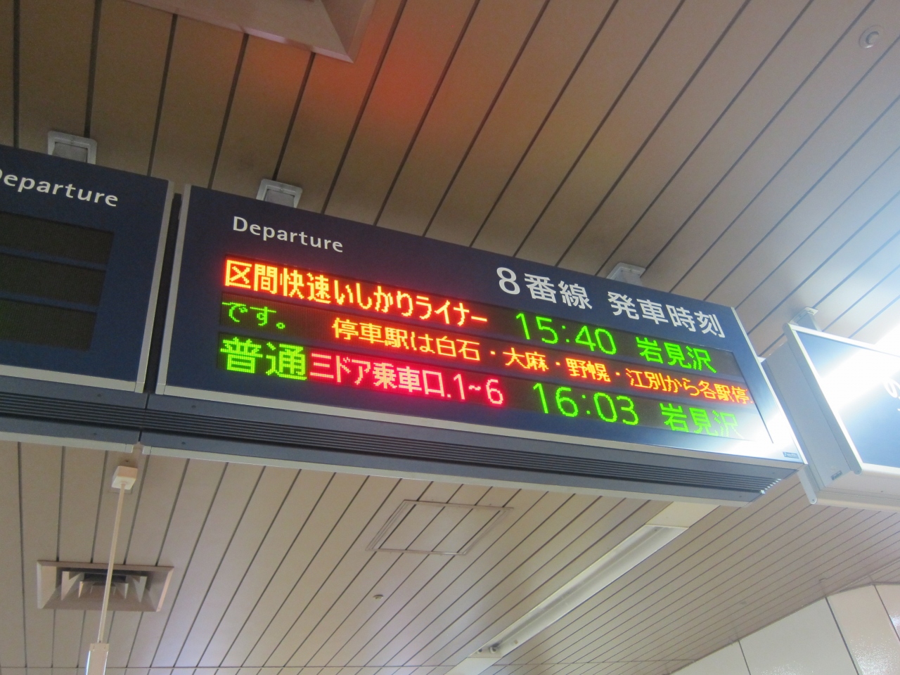 いしかりライナーに乗る時は、車内放送や電光掲示板で停車駅をよく確認して乗らないといけません。