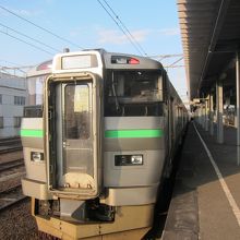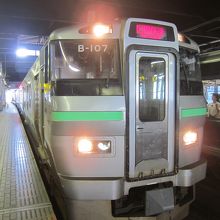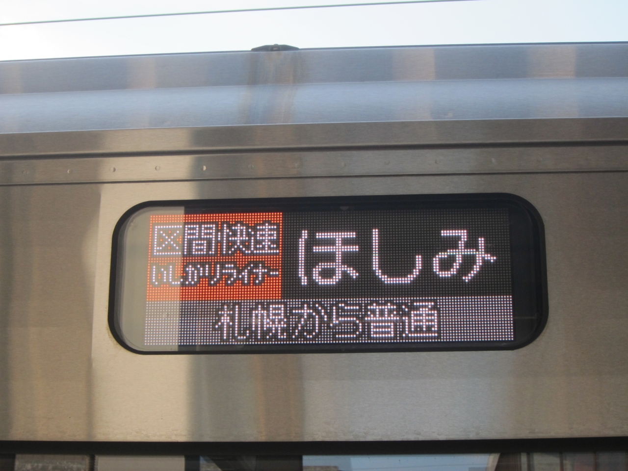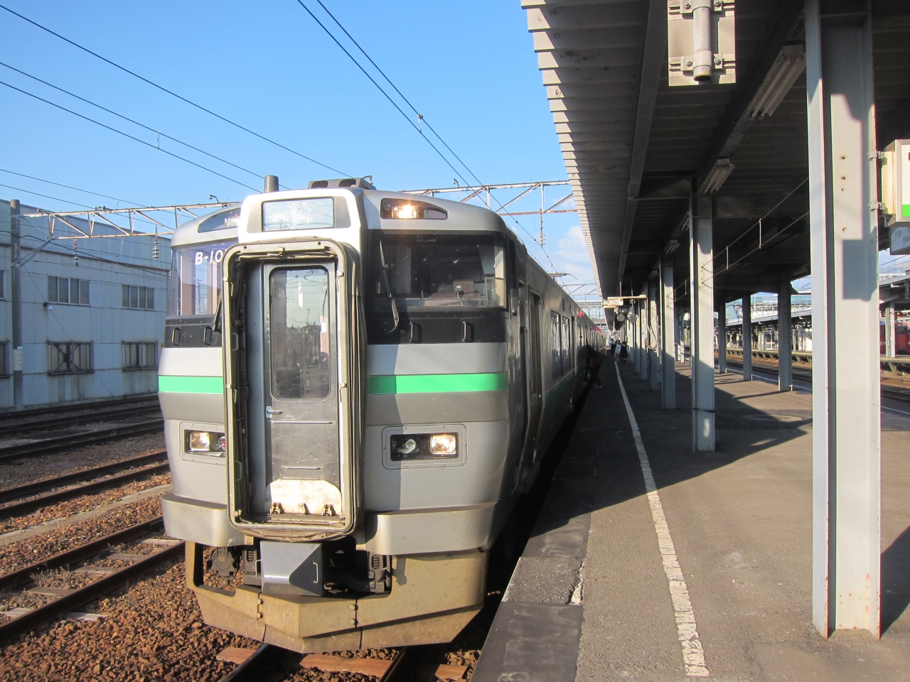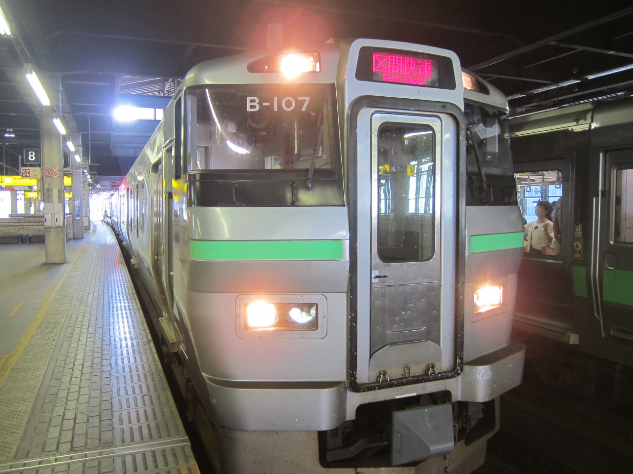 小樽~札幌~岩見沢の函館本線を運行する区間快速です。昼間などはたくさん本数が出ています。ただ、運行形態が複雑な困った快速列車です。札幌の西側、手稲~札幌が快速運転になる列車。札幌の東側、江別~札幌が快速運転になる列車と分かれています。