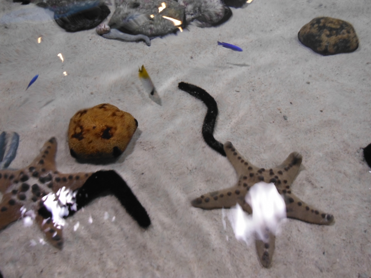 タッチプールでは、ヒトデやナマコなど普段触ることのない生き物を触ることができて、子供も楽しそうでした。