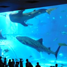 7ヶ月と2歳の子供を連れて行きました。沖縄美ら海水族館といえば、『黒潮の海』エリアの大水槽ですね☆ジンベイザメやマンタ、マダラトビエイ、様々な魚が泳いでいます。まるで、自分が海の中にいるよう♪