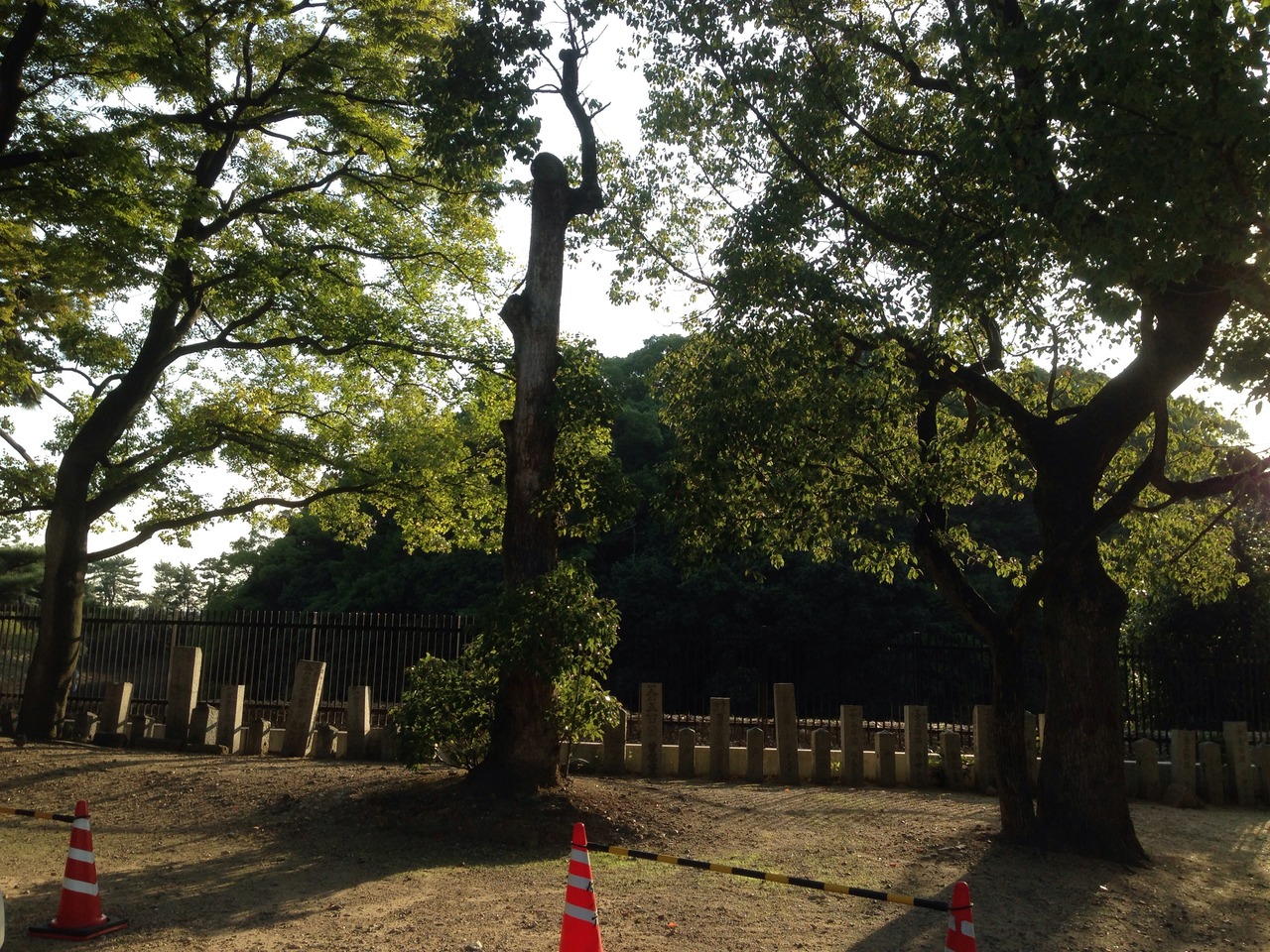 後ろが田出井山古墳(通称:反正陵古墳)なので、こんもり丸い森のようなのが駐車場から見えます。