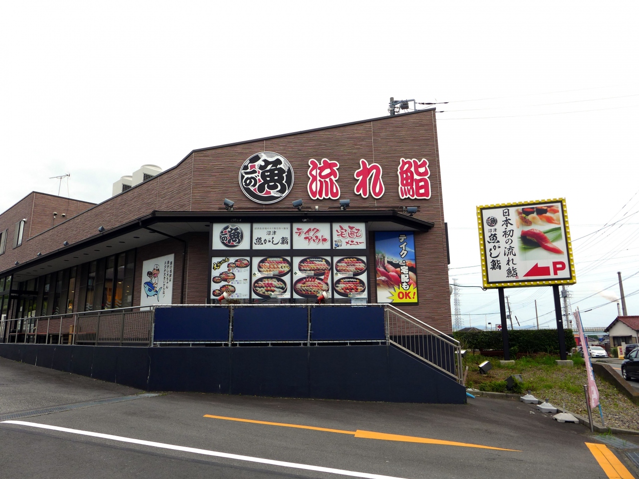 静岡県道21号三島裾野線の三島と裾野の境近くの、郊外型の外食店が並んでいるところに沼津魚がし鮨 流れ鮨 三島店があります。