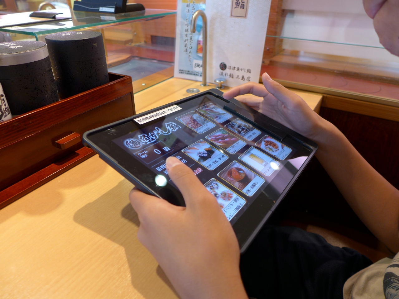 豊富なメニューをタッチパネルで注文するスタイルのお店で、注文したお料理はベルトコンベヤーに乗って運ばれてきます。