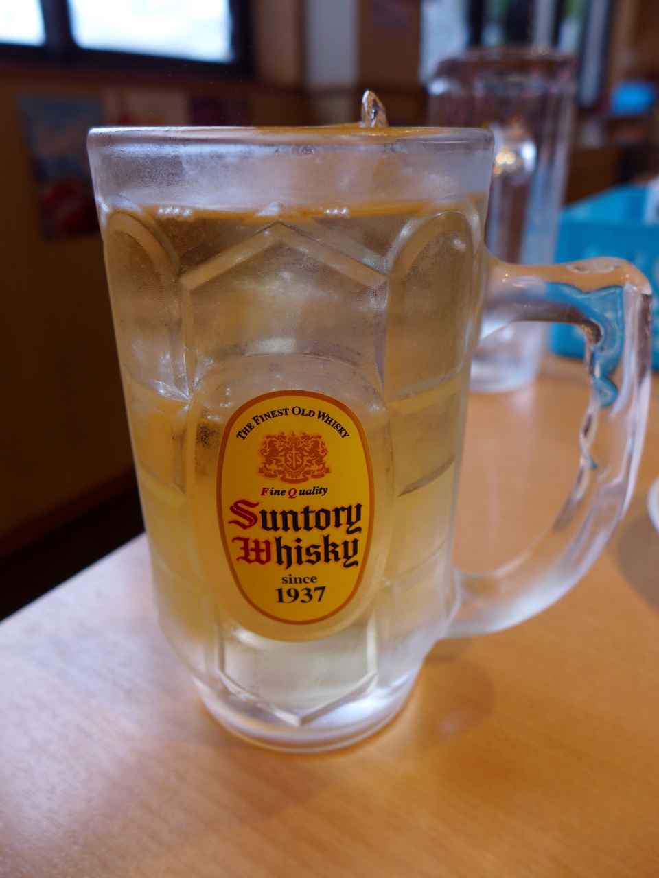 お酒の種類も沢山あって、サントリー角ハイボール(¥350−)と、ニッカヒゲのハイボール(¥350−)の、ハイボール飲み比べも楽しめました。