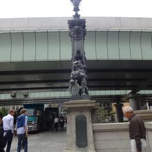 青銅の照明灯が目につくが、この中の模様で麒麟は東京の繁栄、獅子は守護の意味があるそう。