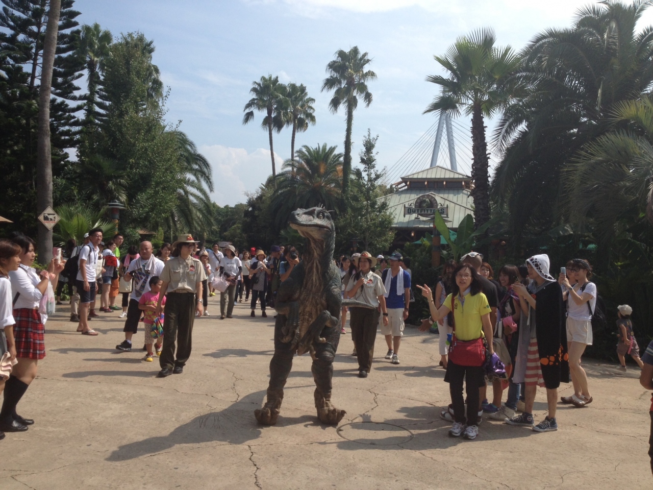 ジャラシックパークの敷地内に行くと、突如サイレンが鳴りだしダイナソーが数3,4匹現れます。ダイナソーは大きいものは結構迫力があって、一瞬止まってこちらを睨んできますので結構ビビります。また尻尾が長いのでお客さんに当たりそうになります。