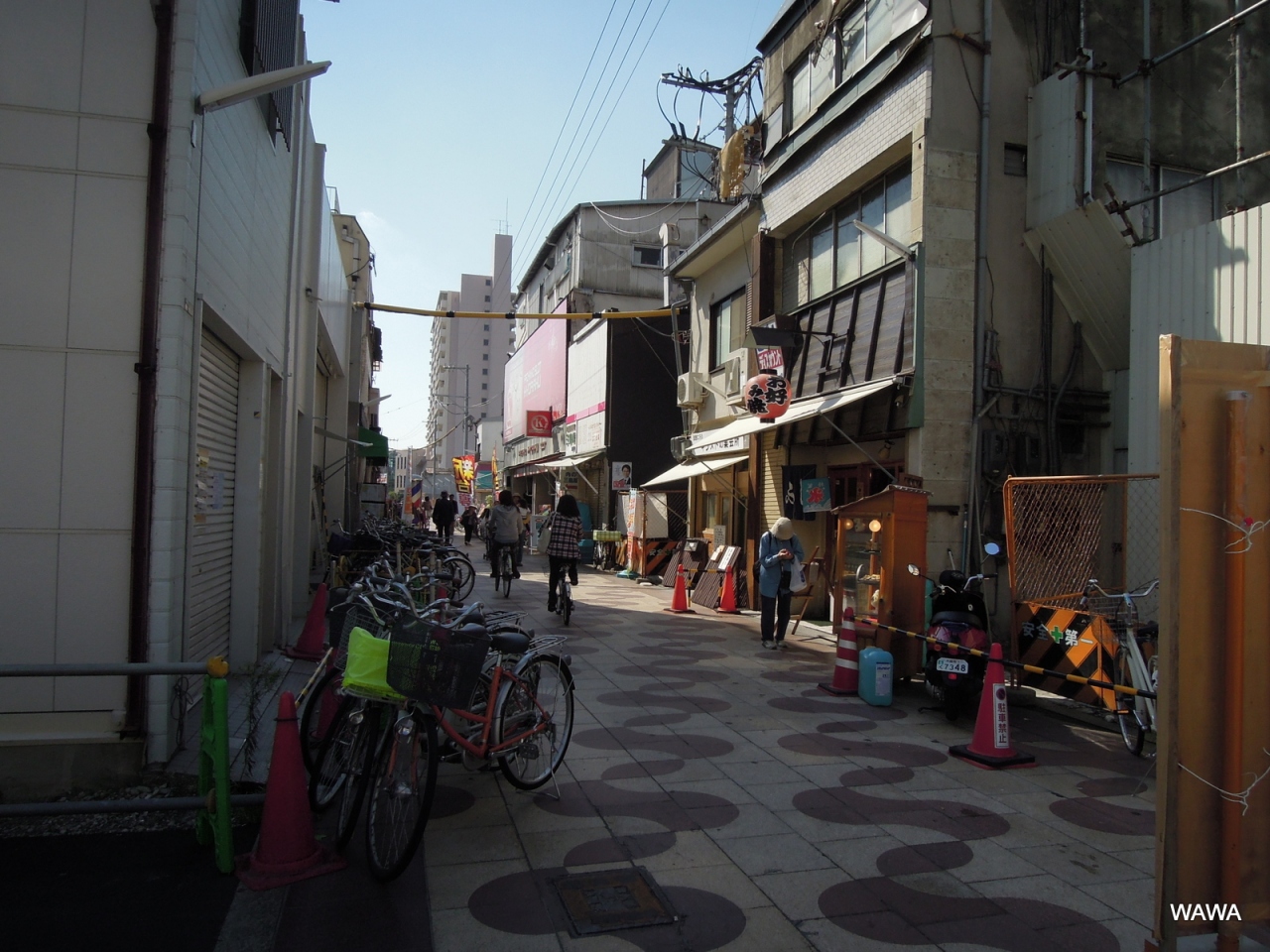 阪急京都線淡路駅の東西にアーケード商店街がありますが、東淡路商店街はアーケードのリニューアル工事のため寂しい姿が続いていました。しかし、2014年の春ごろから徐々に新しいアーケードが完成し商店街の姿が戻りつつあります。