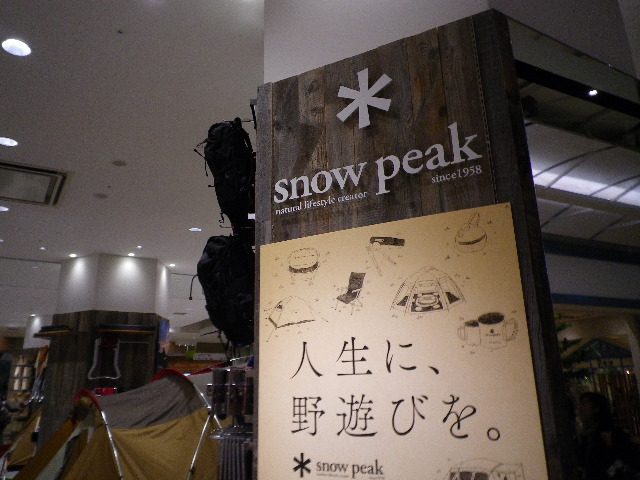 スノーピークと言えば、有名なアウトドア用品を扱うショップですが。こちらはあまり衣料品は扱わず、テントや、アウトドアテーブル、チェアに特化しているようです。すぐ隣には、同じくアウトドア製品を扱うモンベルがあり、アウトドア好きにはたまらない一角です。