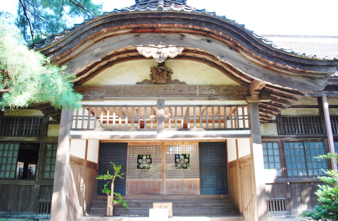 加賀藩主前田利常が前年に24歳で亡くなった正室珠姫(家康の孫娘)の菩提を弔うために元和9年(1623年創建した曹洞宗の寺院。山門は、元禄6年(1693年)建立の二重門で、重厚な構えである。本殿の左側に、多摩姫の生涯を描いたからくり人形があり、毎日実演されている。また、本殿裏の庭園は、回遊式のもので立派なもので、茶室で抹茶を戴きながら、ゆっくり眺めたいものである。