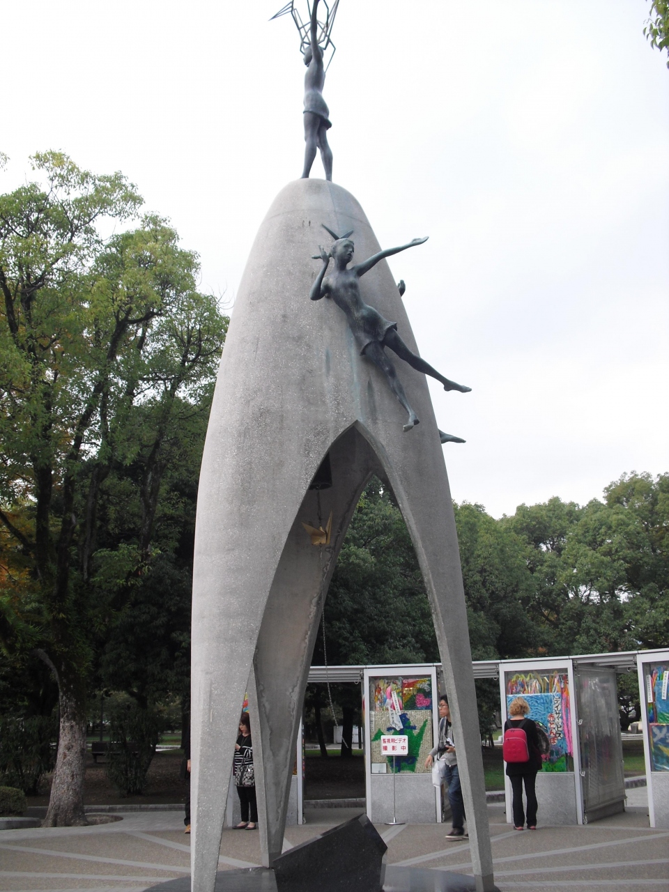 広島駅から市内電車で原爆ドーム前駅で降りると、すぐ平和公園です。よくテレビで見られる原爆資料館などは公園に入って南へ向かってしばらく歩きます。その途中に原爆ドームや様々な原爆に関する慰霊碑などがあります。もちろん原爆に関して色々学ぶ場でもあると思いますが、緑も多く、ゆっくり休めるベンチなどもたくさんあり公園としてもいい公園だと思います。