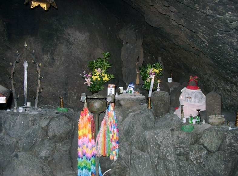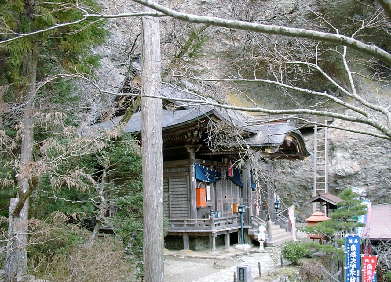 本堂横には穴禅定と言われるほら穴が開けられ、本堂の真下にその洞窟がつながっています。奥まった所に不動明王像があり礼拝場になっています。ろうそくを持って進むのですがなかなか興味深い経験でした。 またその近くから岩場に登る梯子があります。梯子を登ってみる里の景色も見ものです。是非お勧めです。