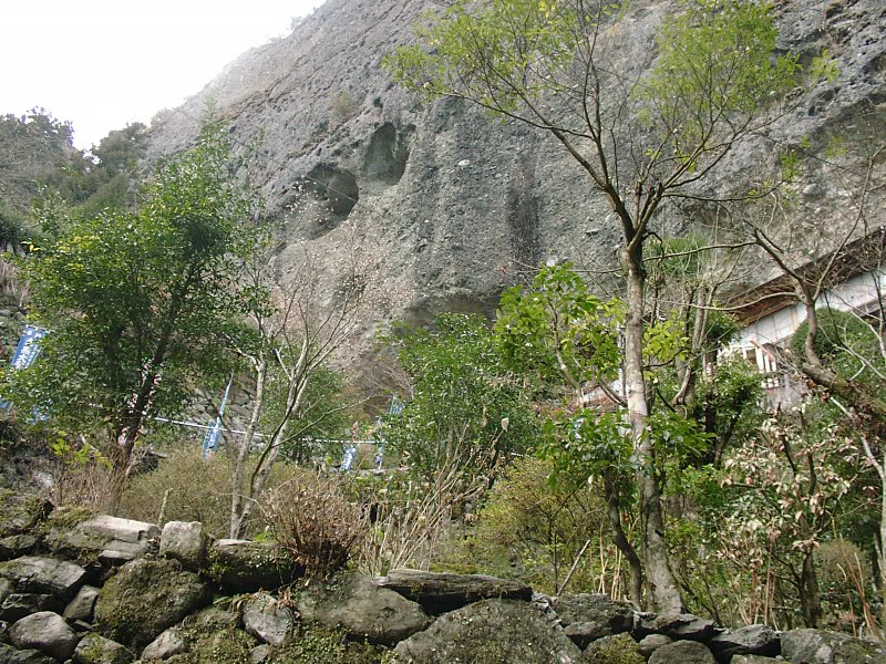 この寺は他の札所とは違った一種異質な雰囲気を醸し出している寺です。寺の背後にはむき出しの岩肌がありその岩肌に行者の修行用と思われるくぼみがいたるところにあるのです。まずその異様な景観にに驚かされるでしょう。
