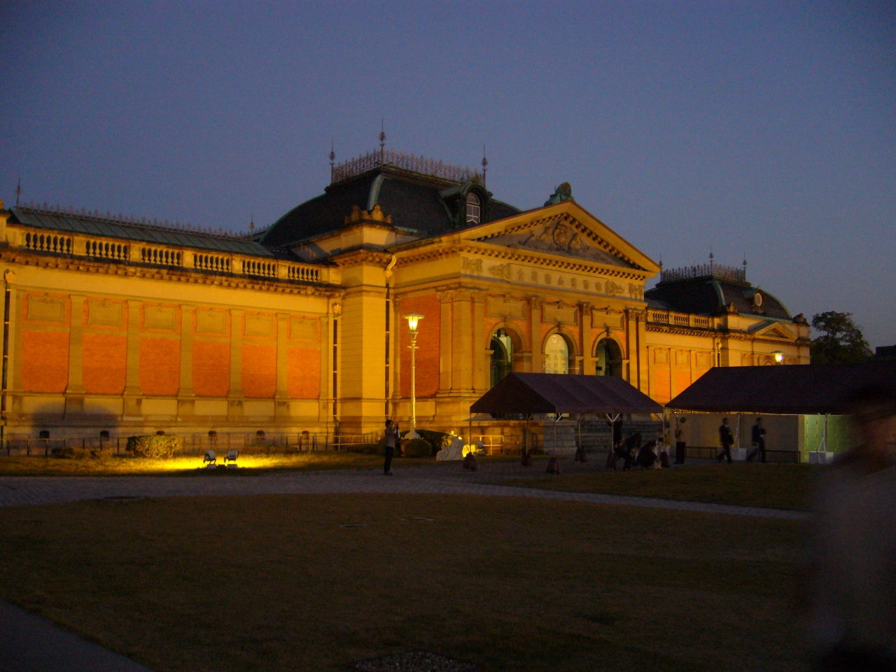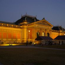鳥獣戯画展を開催している明治古都館は、夜はライトアップ
