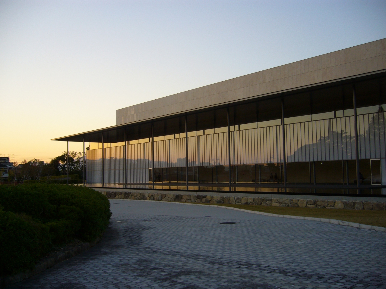 平成知新館は、建物の前に水が張ってあり、建物の中の