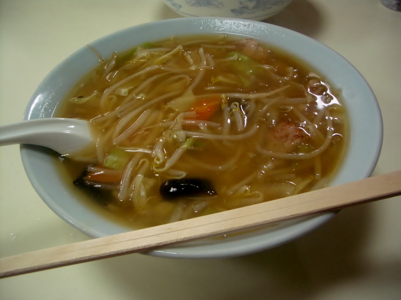 もやしそばは、炒め野菜のあんかけが乗っていて、これまた炒めた香ばしさが引き立って、とてもおいしかったです。お肉もたっぷり入っていました。