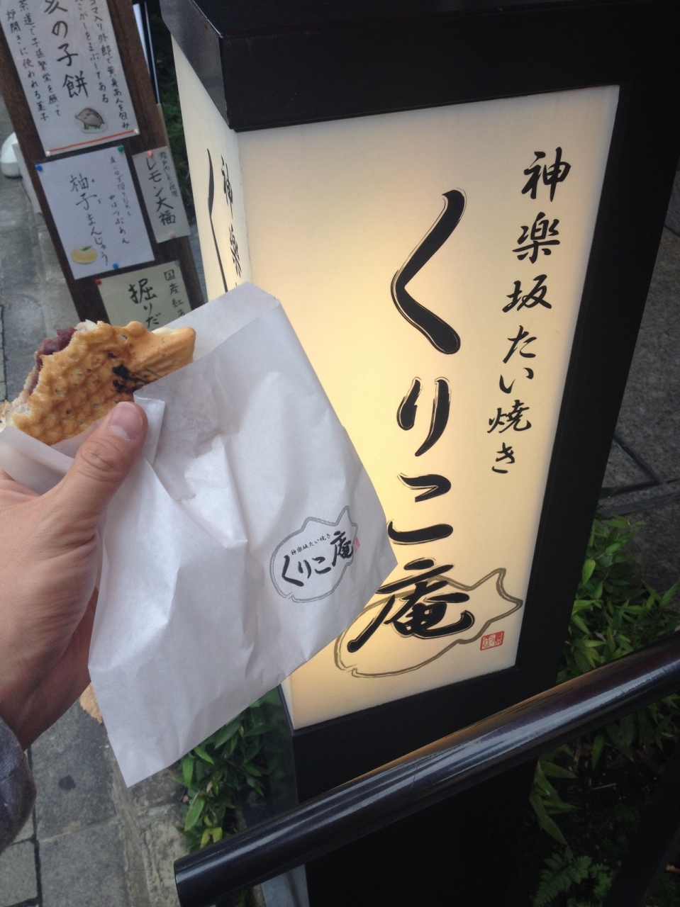 神楽坂の途中にある鯛焼き屋さんで、店内にはイートインスペースがあり、店外にも小さな椅子があるので、歩き疲れたときの小休憩には良いかと思います。普通の鯛焼きの他に栗あんや、クリームチーズなど変り種もあるので楽しめます。
