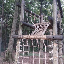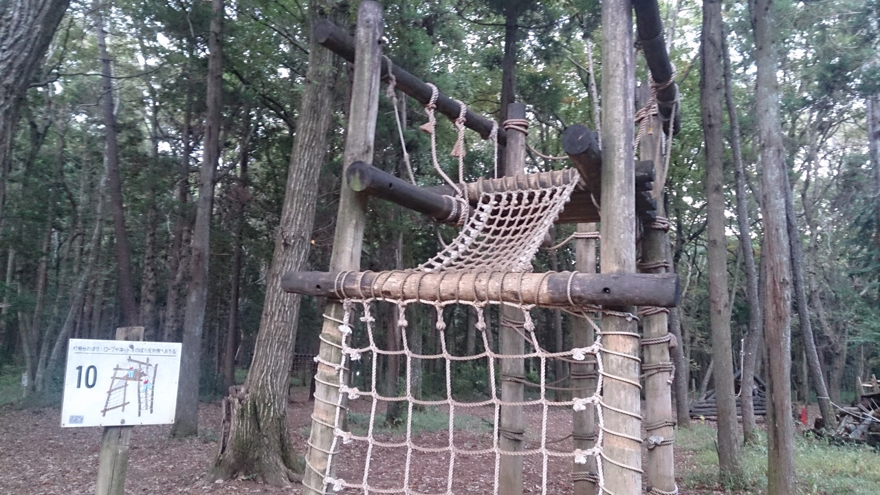 森林に囲まれた公園です。中にフィールドアスレチックがあり、親子連れがたくさん遊んでいます。