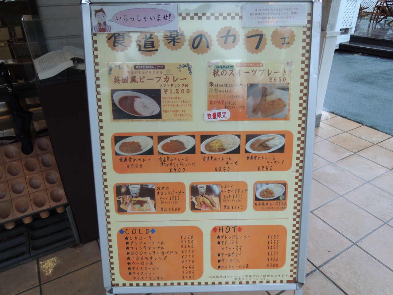 明治村のちょうど中央のへその位置にある食道楽のカフェは家族連れで利用できる村内では大きなカフェの一つでメニューも、カレーがメインですが豊富です。カフェなので飲み物も豊富にありデザートもあります。入鹿池の見える立地で歩き疲れた足を休めるにはいいところですよ。