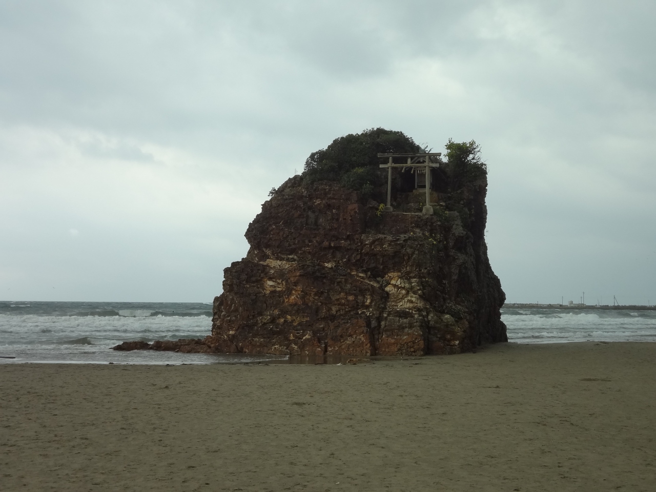 平和そば本店前の道からアプローチし、国道431号線道路に沿って稲差の浜まで歩きましたが、なかなか砂浜に降りることができませんでした。 暗渠から直接砂浜に出てくる川も多数あったので、陸続きになっていた弁天島の近くまで砂浜に降りなかったのは正解だったかもしれません。