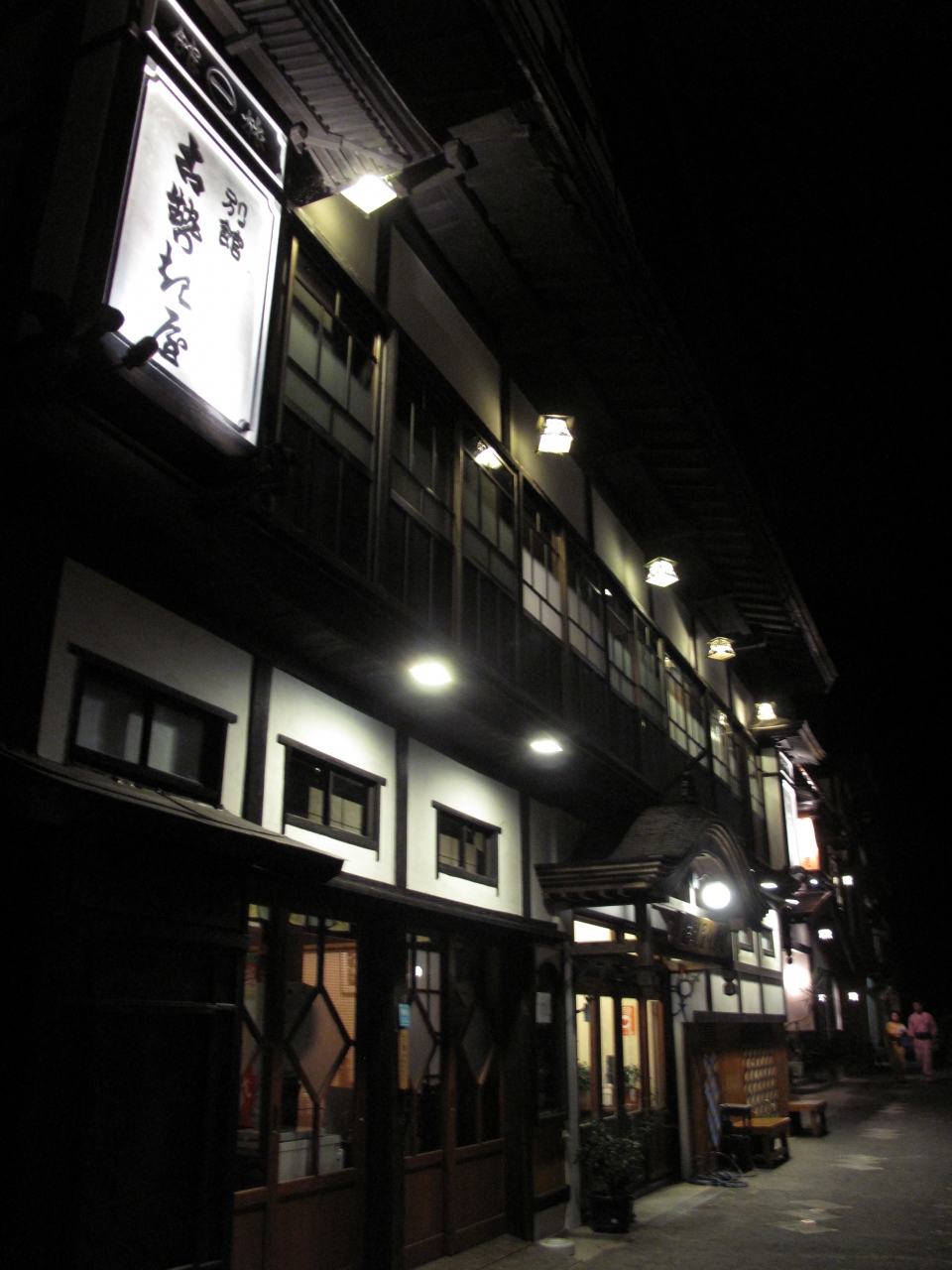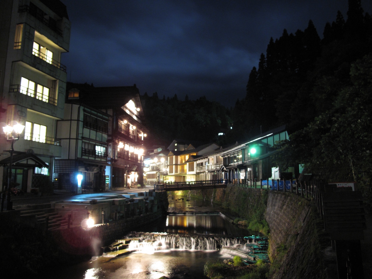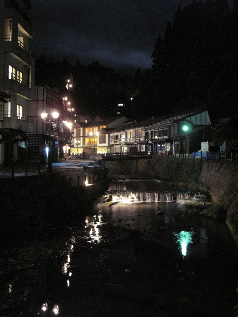 小さな川の両脇に立ち並ぶ、木造(木造風鉄筋コンクリートも)の4階建てくらいの温泉宿がひしめいています。 だけど、静か。。。