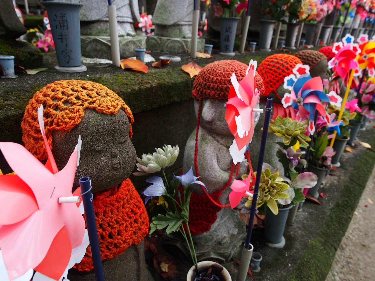 ずらりと並んだお地蔵さんと風車、手編みっぽい帽子・・・。風が吹くといっせいに風車がまわって思わず可愛らしい、と写真を撮ってしまいましたが、よくよく見ると花を入れるところに○○家、など名前が入っていて、子供を失った人たちの思いがこめられた供養を願う場所なのだと改めて思い、不謹慎だったと恥じました。静かな気持ちでお参りをしたい場所です。