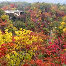 パンフレットなどによく載っている橋近くの景観が有名ですが、駐車場から逆方向に歩いて行っても素晴らしい紅葉スポットがいくつかあります。