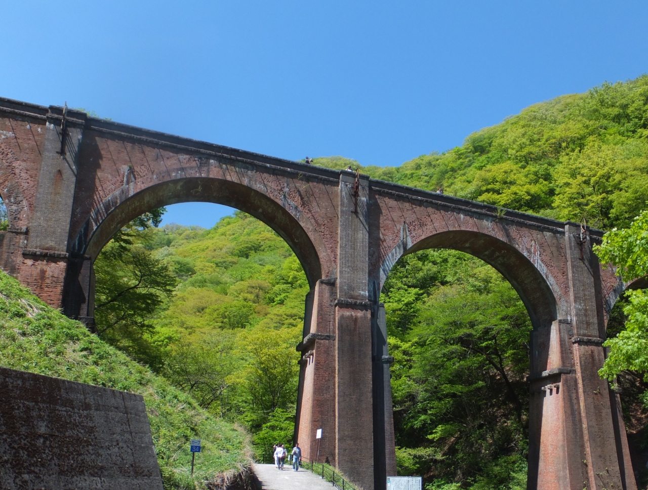 全長91メートルの橋を渡り、下から「めがね橋」の全容を眺め、重要文化財でもある、煉瓦造りの堂々とした立派な橋に感動した。