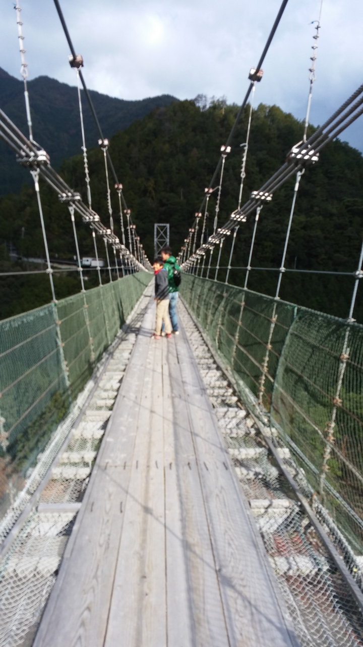 風のきつい時に橋を渡ってみました。真ん中ぐらいになると風の音が怖くて少しゆれるので怖くなります。戻るときは慣れたのかぜんぜん怖いと感じませんでした。