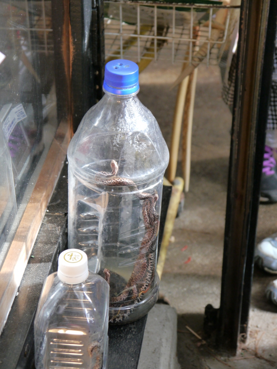 マムシ酒用のマムシも売っていて、ペットボトルの中でうねうねしておりました。