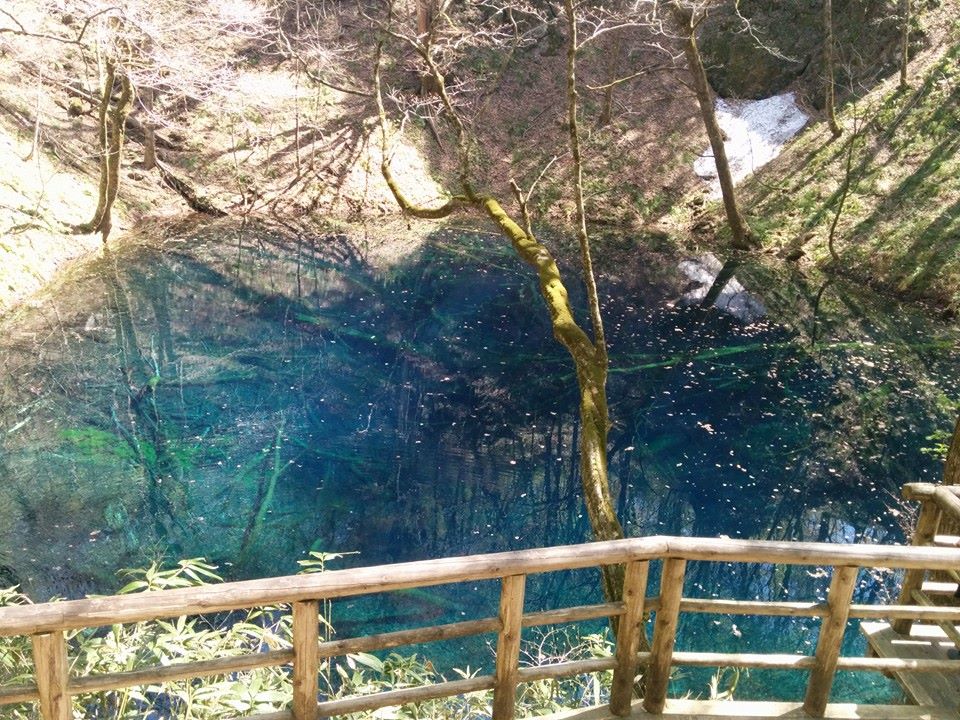 青池を見たくてわざわざ行ってきました。白神山地を見ながらどこにあるのか??と探しつつついた駐車場から少し歩くと見れます。途中に池はいくつもあるのですが何故か青池だけ青くて驚きます。あの透明度と青さは感動です。なぜあの池だけ青いのか?あれほど透明度が高いのか?まだ解明されていないそうです。どうせなら謎のままあって欲しいと思う美しさです。