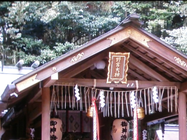 竹林の中を歩いていくと神社があります。