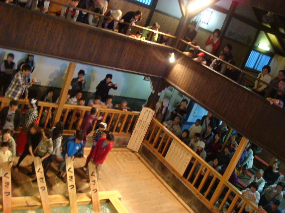 たぶん、ホテルや旅館でのパフォーマンスなのか?・・と思っておりましたら、湯もみを観覧できる場所があるとか。