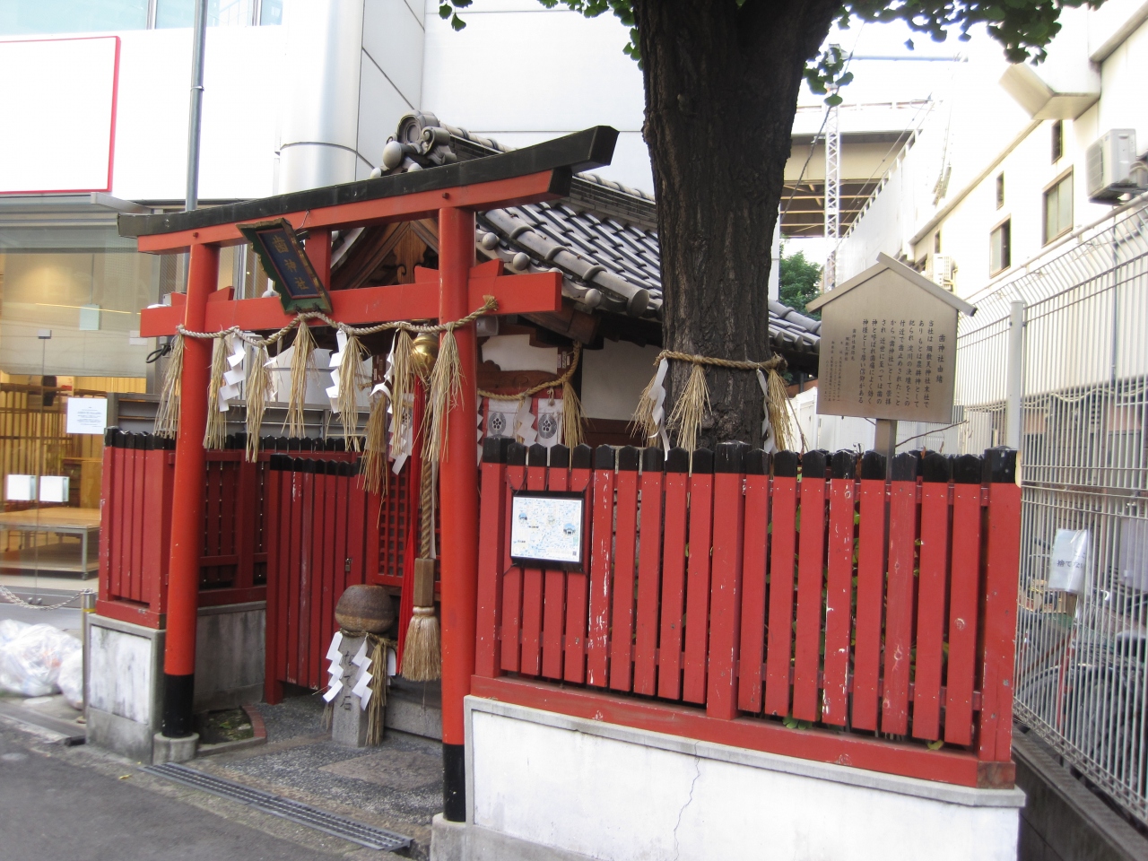 都会の真ん中にある小さな神社で鳥居と社があるだけですが、淀川の大氾濫を御神体の巨石が、この付近で歯止めしたことから崇拝されるようになったという由緒正しい神社です。