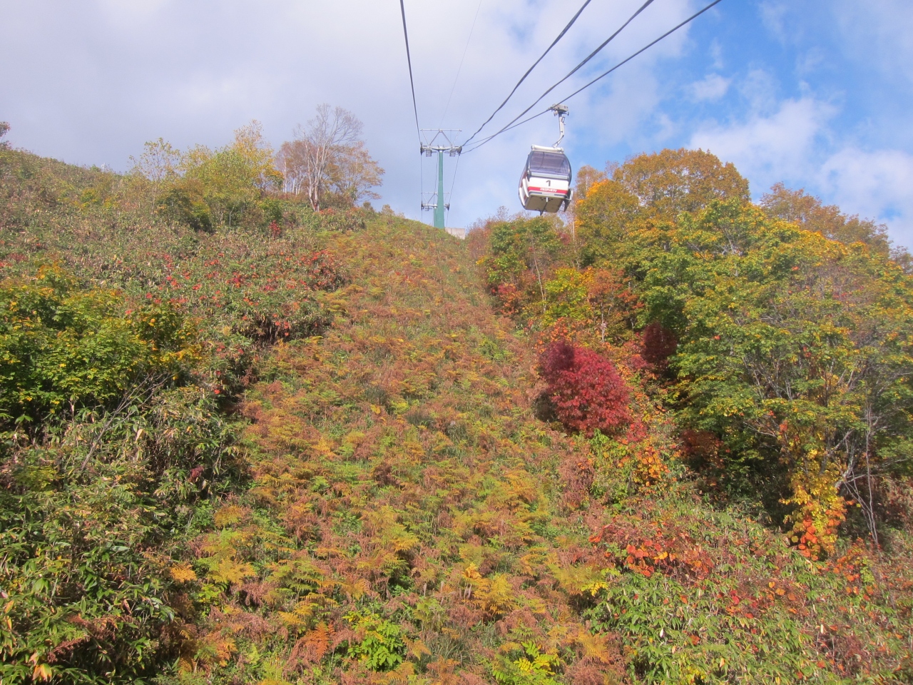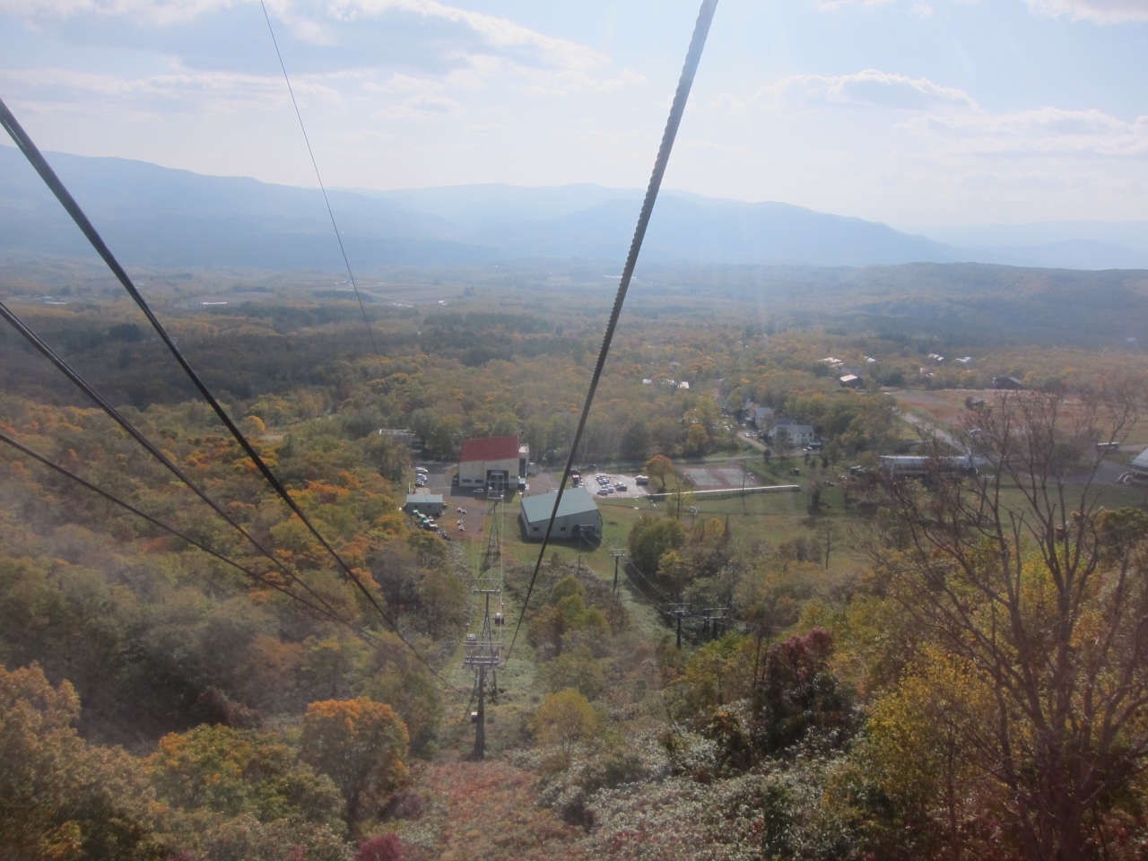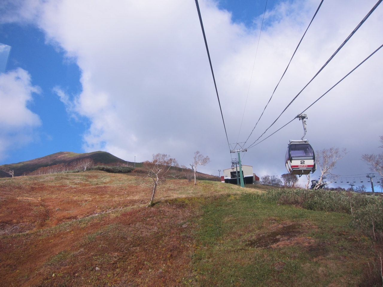 山麓駅からニセコアンヌプリの1000m台地まで、10分あまりの爽快な空中散歩です。6人乗りのゴンドラがスキーリフトのように続いているので、すぐ乗ることができ、家族連れなどプライベートの空間を楽しむことができます。設備は微妙に古めなところもありますが、ゴンドラではわずかに窓を開けることができます。窓を開けると爽快な風が入ってきて気持ちいいです。とても良い気分で紅葉や山並みの景色を堪能することができました。