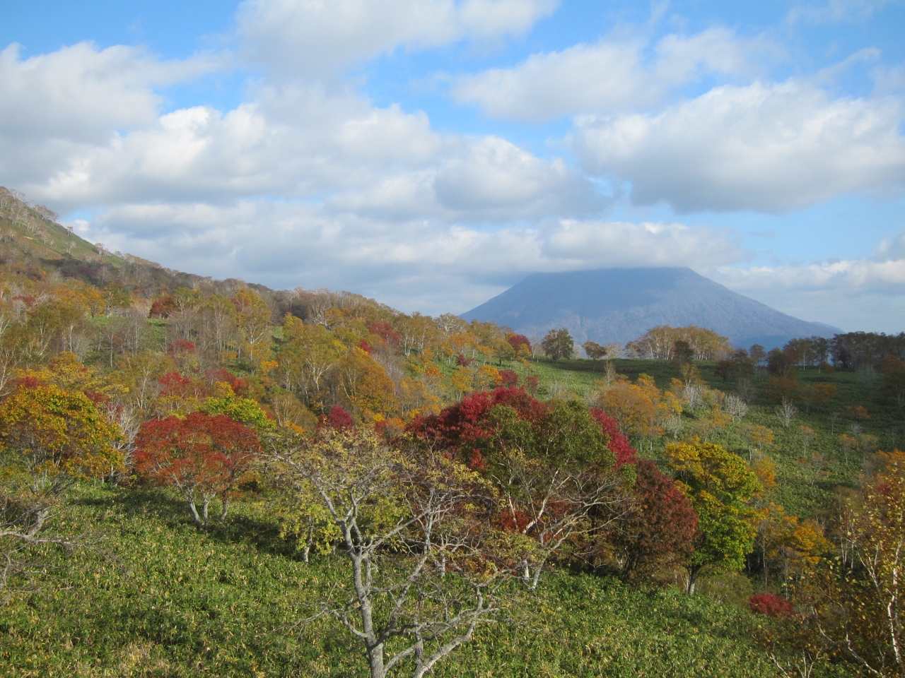 紅葉の時期はおすすめです。眼下の紅葉がきれいでした。訪れた時には、下の方では、赤、黄の素晴らしい景色でしたが、上の方では落葉気味でした。しかし、上に行くにつれ、木々の間からむっくりと羊蹄山が現れ、麓も全体が遠くまで見渡せるようになります。ゴンドラ頂上の1000m台地では、遙か遠く噴火湾(太平洋)や日本海も見えるようです。訪れた際は残念ながら、少しかすんでいてそこまでは確認できませんでした。